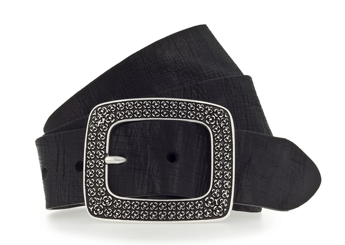 Ceinture cuir pour femme dans une couleur noir , on aime sa boucle assez grande et travaillée et son aspect cuir