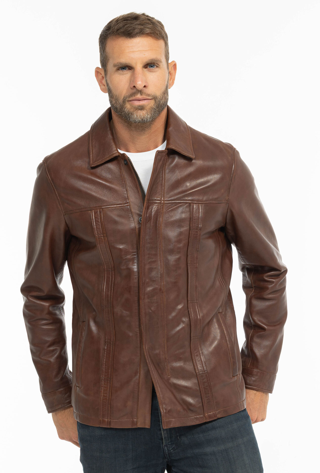Vestes & Trois Quart cuir en cuir agneau-LEONARD marron vieilli-marron vieilli
