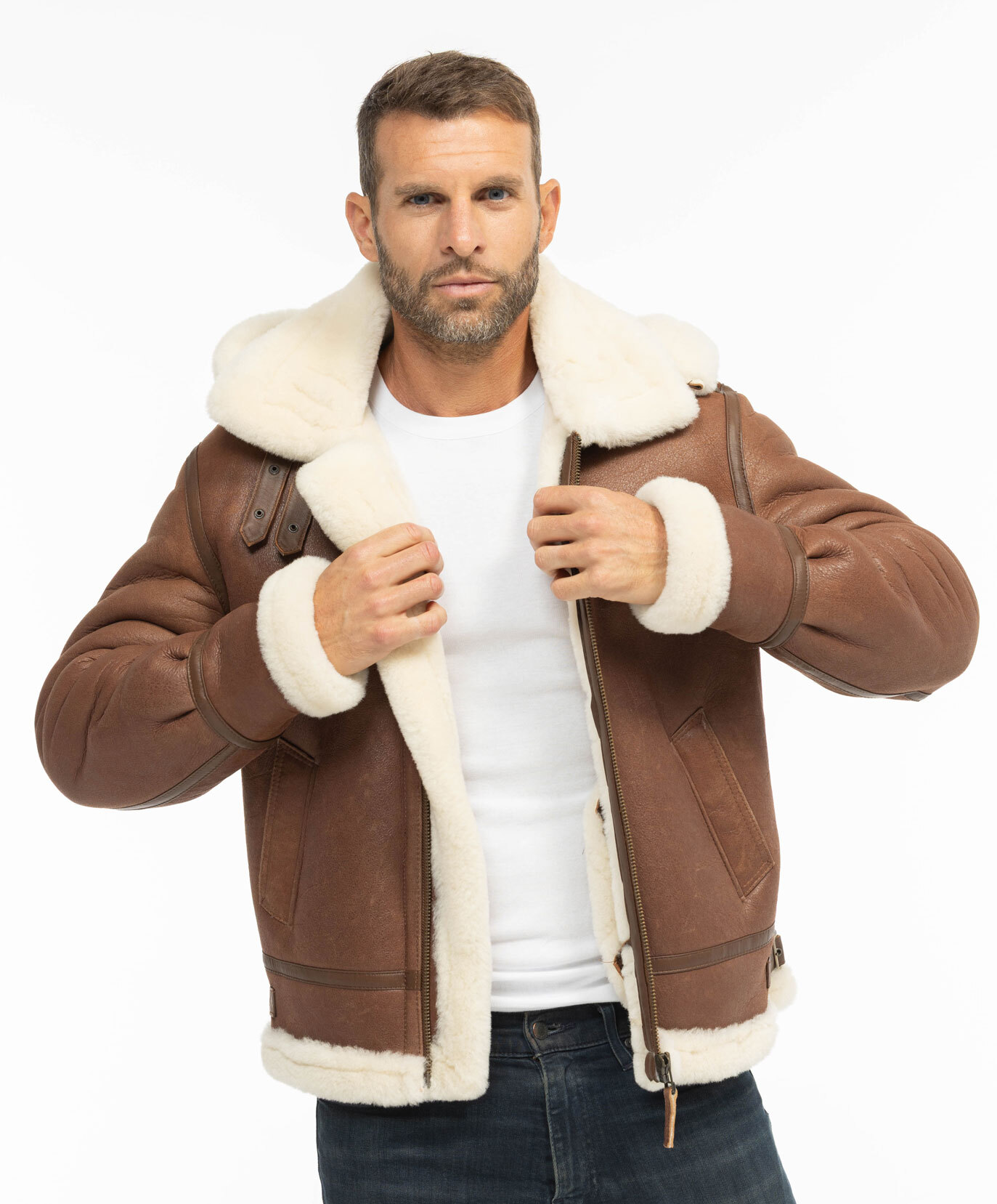 Porté par les pilotes et les parachutistes américains durant la Second Guerre mondiale, le bombardier est un blouson chargé d'histoire. Ce bombardier en mouton est de la marque Cuirs Guignard, c'est un incontournable de leur collection. Le bombardier mouton a été conçu pour résister aux conditions extrêmes. Afin de mieux les protéger, le bombardier est fabriqué en mouton retourné, c'est-à -dire en peau de mouton doublée avec sa propre fourrure. Idéal pour passer l'hiver et les fraîches soirées avec sa laine qui coupe du vent, garde la chaleur du corps, quoi demander de plus chaud qu'une peau de mouton !! De plus le blouson Bombardier se ferme grâce à une fermeture zippée donc impossible pour le froid de s'y glisser, pas de coup de froid c'est assuré. Il est très confortable et agréable à porter même si c'est vrai le mouton fait un certain poids. Il est doté d'un très large col, d'une capuche amovible de poignets et d'une taille fourrée. Vous pouvez ajuster votre blouson grâce à ses pattes de resserrage au niveau des hanches. Sous le col, vous retrouvez deux boucles et ses deux pattes à rivets. Vous avez des bandes de cuir lisse marron foncé, une finition impeccable. Idéale pour toutes les morphologies avec sa coupe droite, confortable, intemporel .On vise un look élégant ou décontracté, il s'adapte à tous les styles, toujours aussi tendance, on aime son coté vintage. L'aspect extérieur de la peausserie est légèrement vieilli, ce qui donne beaucoup de cachet à cette pièce .Essayez ce bombardier c'est l'adopter, c'est une pièce indispensable pour votre garde robe . Ce bombardier Cuirs Guignard mesure 64 cm de longueur corps sur une taille L, c'est à dire de la base du col au bas du vêtement.
