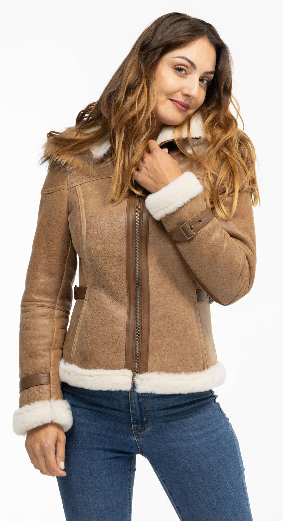 Blouson cuir mouton femme whisky style bombardier capuche Cuirs Guignard