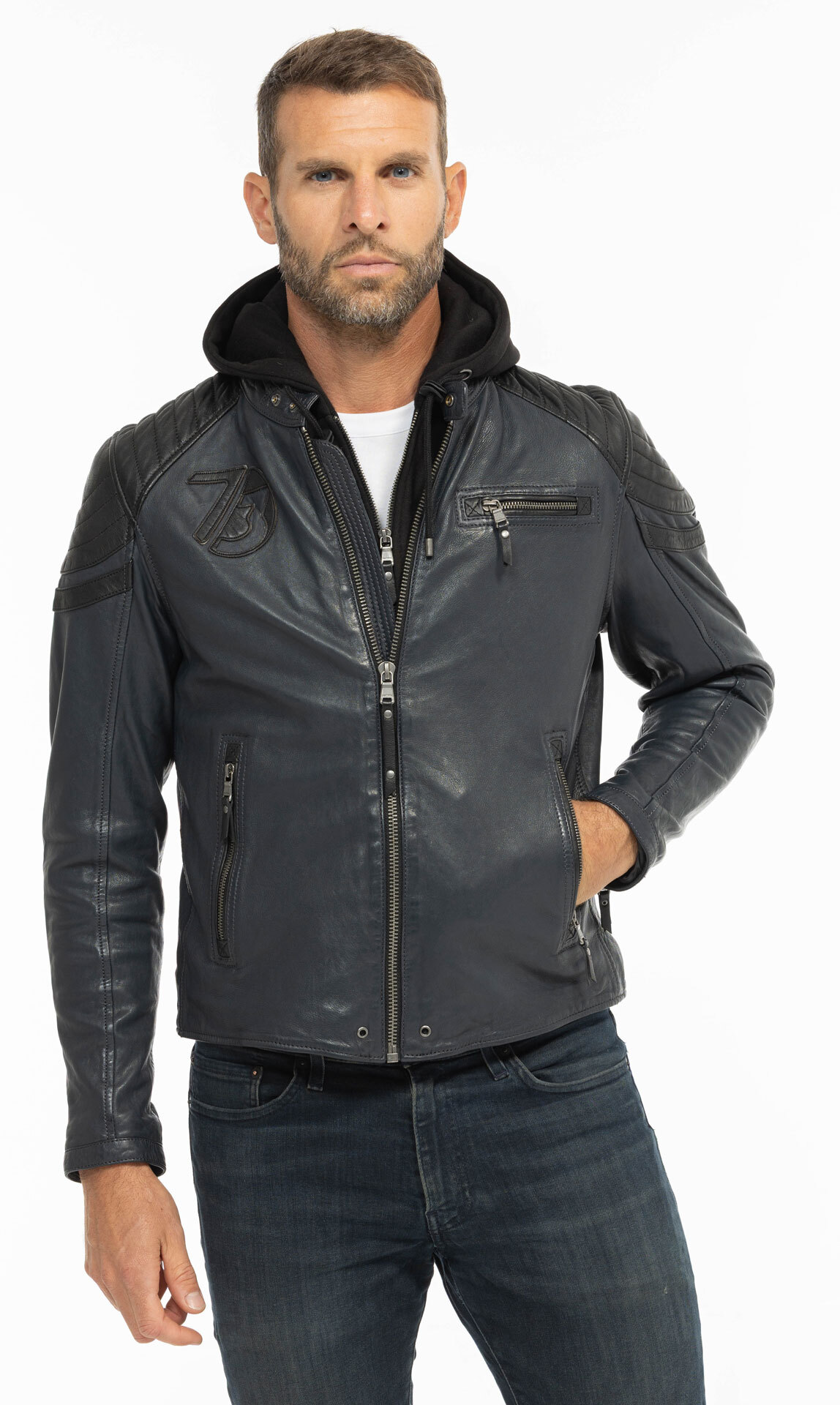 Blouson pour homme de la marque Daytona en cuir d'agneau , il possède une capuche amovible . On retrouve une coupe légèrement cintrée, un cuir souple dans un look sportwear tendance. Sa capuche amovible nous offre la possibilité de deux looks, un coté sport avec celle ci et un style motard sans . En effet, il est facilement reconnaissable avec son col mao avec pression, ses surpiqûres effet matelassé au niveau des épaules et ses différents patchs sur la poitrine . Le blouson cuir se ferme à l'aide d'une fermeture éclaire centrale, possède une finition zippée sur l'arrière de la manche ainsi qu'une petite poche zippée au niveau de la poitrine. Sur l'avant, vous avez également deux poches biais zippées, à l'intérieur, la doublure est en coton pour le corps avec 3 poches et en polyester pour les manches.