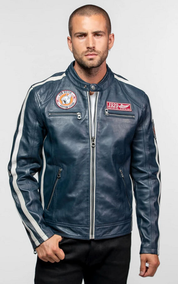 Très joli blouson pour homme de la marque Daytona dans un look motard, tendance. IL est confectionné en cuir 100 % agneau au tannage végétal . Affirmez votre style avec ce blouson en cuir Von Dutch, inspiré des plus belles heures du racing vintage américain. Entre authenticité, caractère et coupe moderne, il incarne l’ADN rebelle et intemporel de la marque. Pour se démarquer et plus d'originalité , le blouson cuir possède des patchs brodés esprit moto vintage aux bras et à la poitrine. De plus, on lui retrouve également des bandes latérales décoratives surpiquées aux bras . Vous avez un col mao avec bouton pression, il se ferme à l'aide d'un zip droit, vous avez l'arrière des manches zippées . Sur l'avant, vous avez 4 poches extérieures zippées, deux poitrines et deux latérales . Il est entièrement doublé en coton couleur crème pour le corps et les manches sont en polyester . La doublure est agrémentée de 3 poches intérieures , une à zip, une à pression et une pour le téléphone, parfait pour vos effets personnels. Ce modèle est proposé dans une coupe ajustée pour affiner votre silhouette.