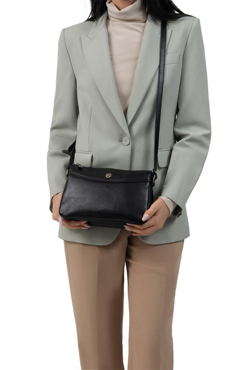 Sac cuir porté travers femme noir Hexagona