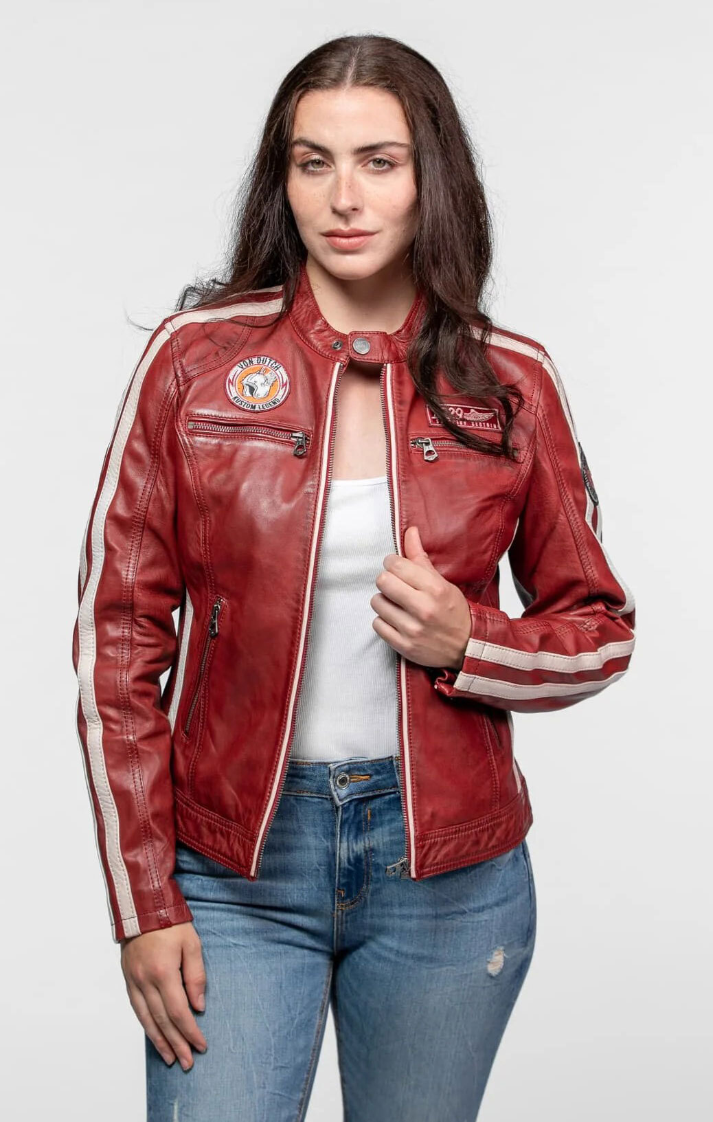 Très joli blouson pour femme de la marque Rose Garden dans un look motard, tendance. IL est confectionné en cuir 100 % agneau au tannage végétal . Affirmez votre style avec ce blouson en cuir Von Dutch, inspiré des plus belles heures du racing vintage américain. Entre authenticité, caractère et coupe moderne, il incarne l’ADN rebelle et intemporel de la marque. Pour se démarquer et plus d'originalité , le blouson cuir possède des patchs brodés esprit moto vintage aux bras et à la poitrine. De plus, on lui retrouve également des bandes latérales décoratives surpiquées aux bras . Vous avez un col mao avec bouton pression, il se ferme à l'aide d'un zip droit, vous avez l'arrière des manches zippées . Sur l'avant, vous avez 4 poches extérieures zippées, deux poitrines et deux latérales . Il est entièrement doublé en coton couleur crème pour le corps et les manches sont en polyester . Ce modèle est proposé dans une coupe ajustée pour affiner votre silhouette.