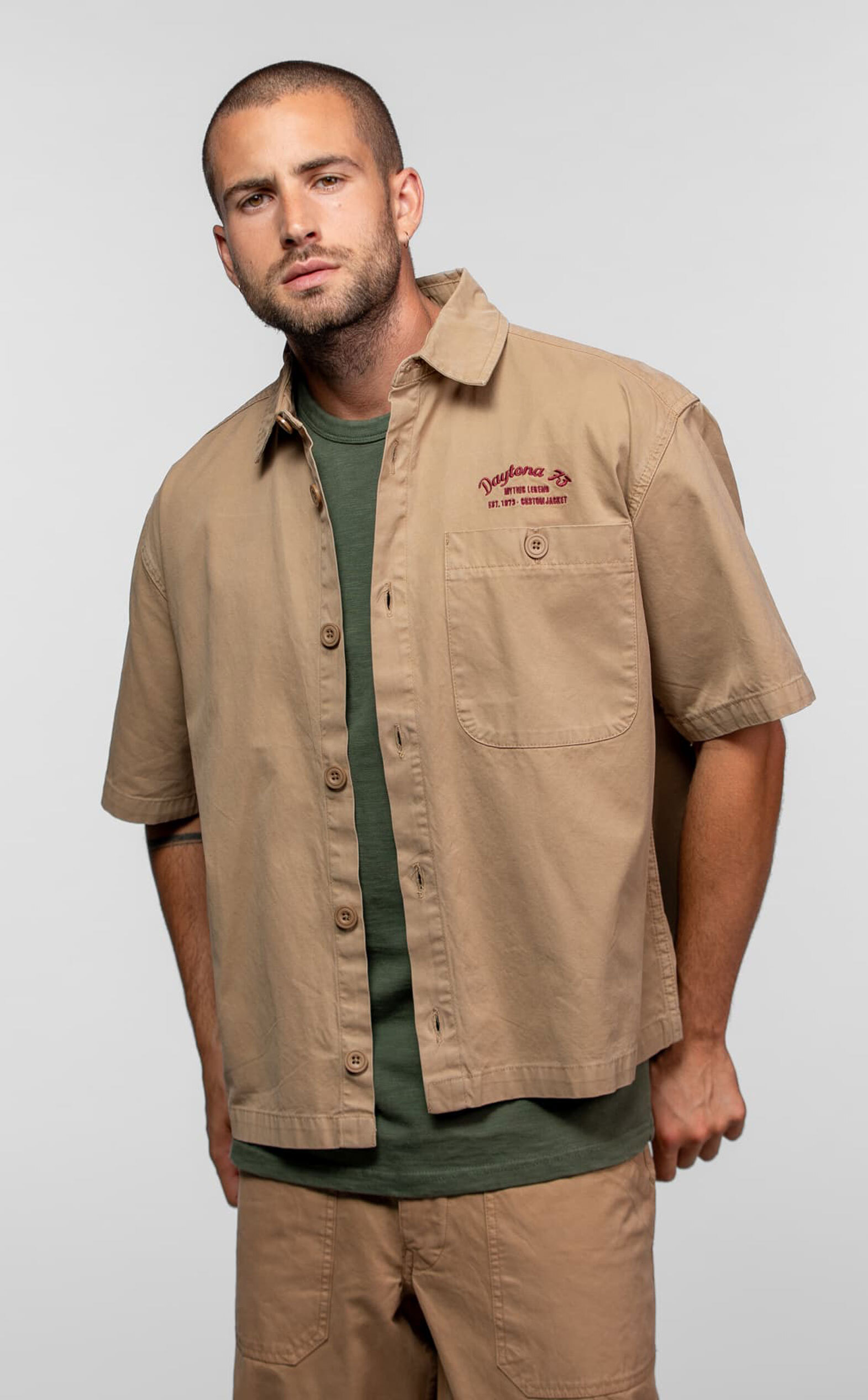 Adoptez un style décontracté et affirmé avec la chemise à manches courtes pour homme Daytona 73 – modèle Tucson. Inspirée du workwear américain, cette chemise revisite les codes du vêtement de travail avec une coupe boxy contemporaine et des détails authentiques qui font toute la différence.