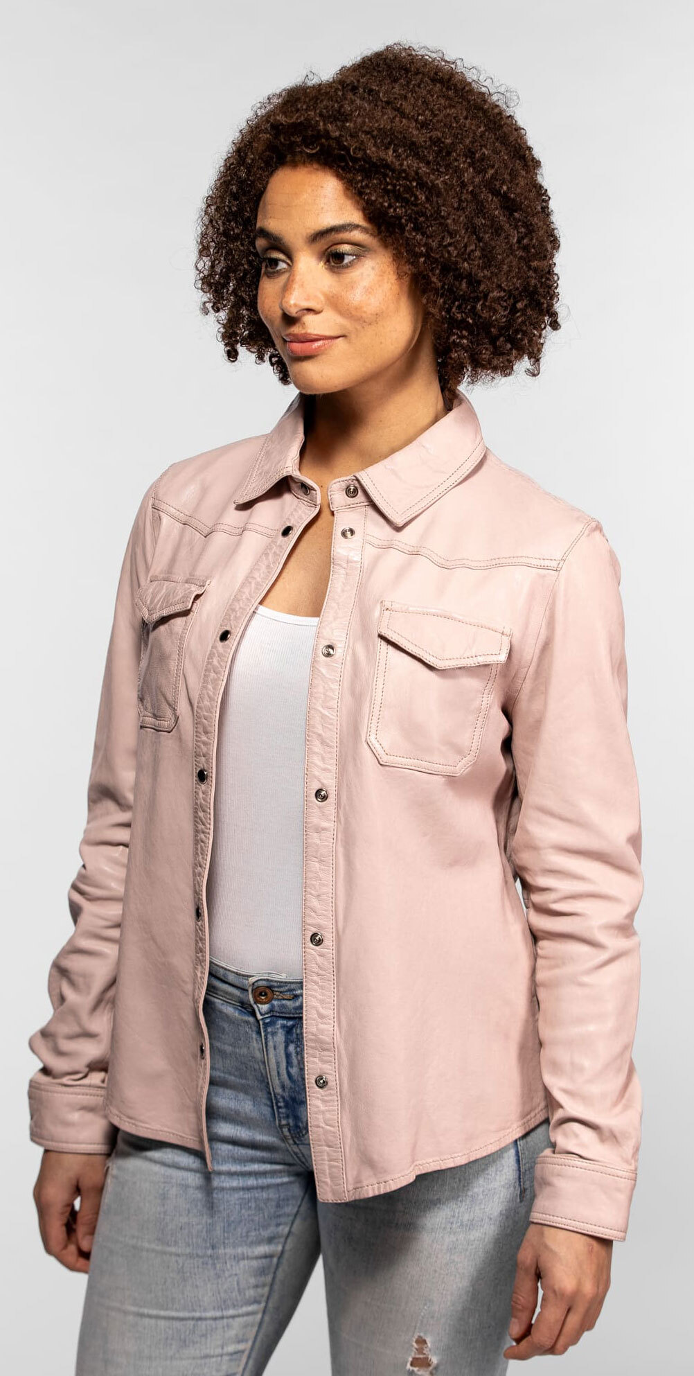 Le dilemme entre une veste trop lourde et un top trop léger gâche souvent votre silhouette de mi-saison. Porter une pièce qui manque de structure peut affadir votre style personnel. Cette chemise cuir femme poudre Rose Garden est la solution : elle offre la carrure d'un blouson et la fluidité d'un vêtement de peau.
